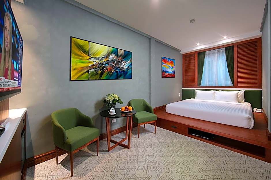 This deluxe king room has a smart TV, air conditioning and electronic safe.